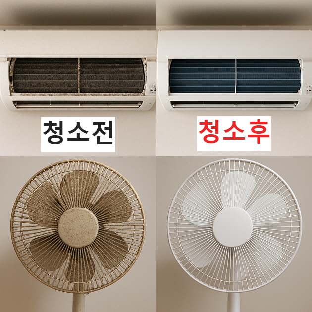 더러운 에어컨/선풍기 ➜ 건강 위협! 청소 업체 위탁 ➜ 비용은 들지만 안전하고 확실! 장기적인 전기세 절감과 냄새 제거 효과까지! 직접 해보기 어렵다면, 한 번쯤 꼭 맡겨보세요 😊