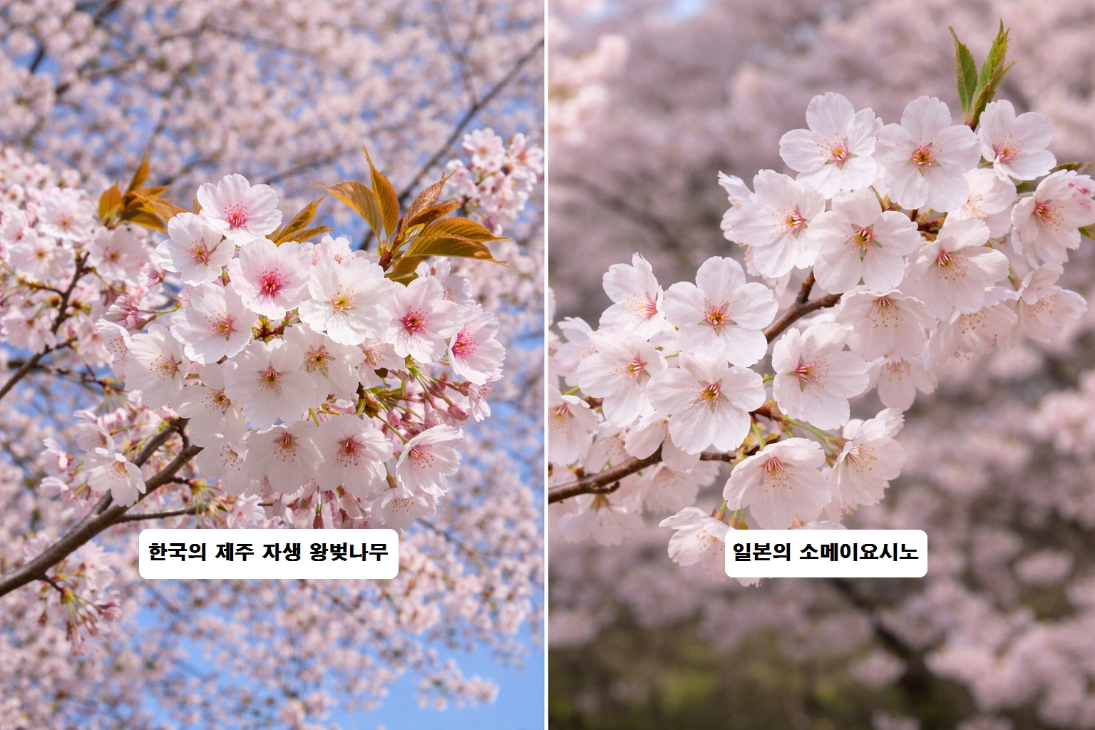 한국의 제주 자생 왕벚나무와 일본 소메이요시노는 같은 말처럼 쓰이지만 구분해서 보는 기준이 필요합니다.